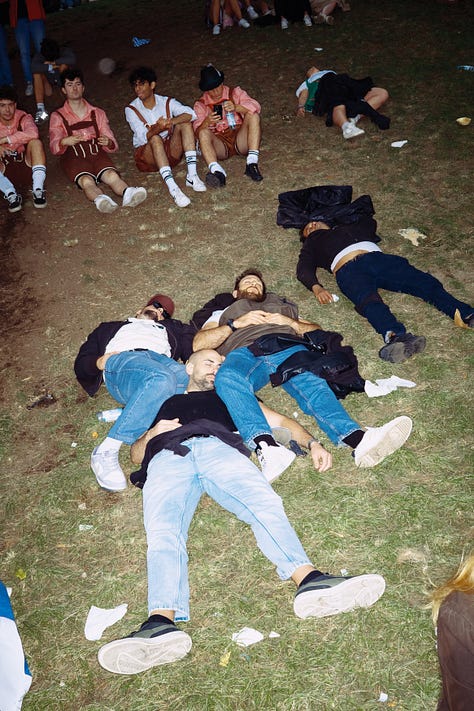 Я не пил алкоголь и при этом впервые оказался в палатке часов в десять вечера, когда веселье было в самом разгаре. И очень порадовался тому, что сам не пью. Сразу было видно, кому с утра будет совсем плохо — таких людей было немало. Большинство вели себя просто как пьяные люди: сосались, стояли на столах, паясничали и прикалывались друг над другом. Парочки лапали друг друга, не стесняясь. Одним словом, для фотографа — рай. На тебя никто не обращает внимания, а если и обращает то сам лезет сниматься.