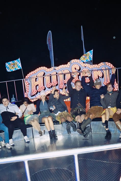 Если описать увиденное одним словом — это Алко-Диснейленд. Приезжаешь, тратишь кучу денег на алкоголь и всякие увеселения: американские горки, колесо обозрения, машинки, на которых можно кататься пьяным и врезаться друг в друга, пневматическое ружье, из которого стреляешь по мишеням. В моем представлении об Октоберфесте всего этого не было. Но оказалось, что это большая часть праздника».